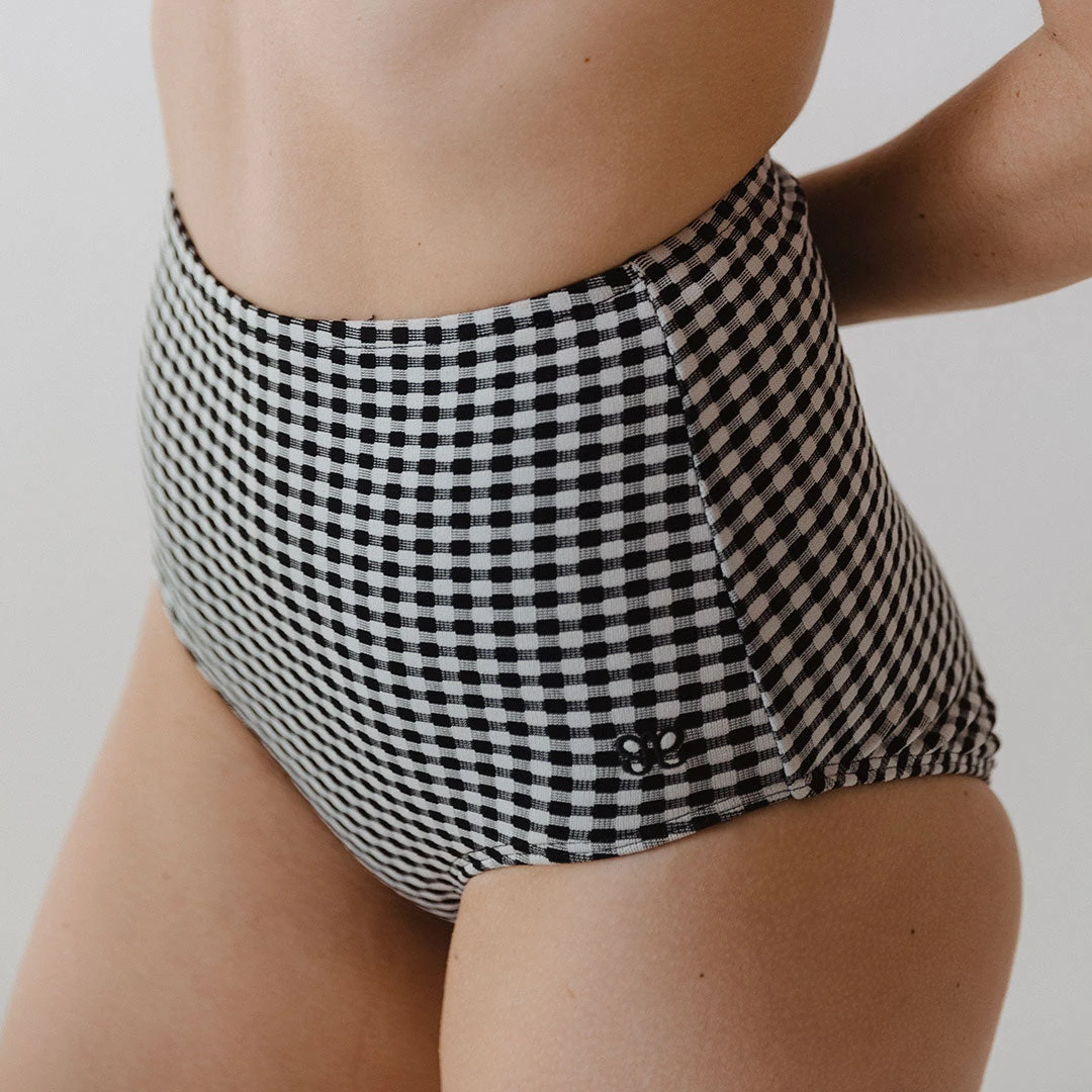It’s our classic high-waisted swim bottom in a new GORG gingham print. This suit’s got full coverage in the front and back so you can spend your vacay tug and worry-free. It doesn’t get any better than this!