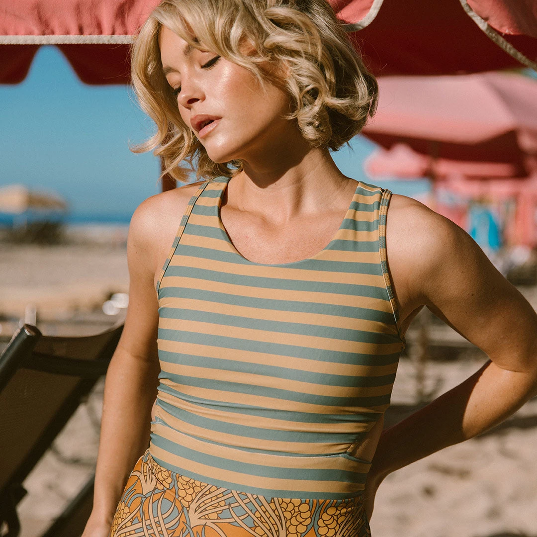 Quintessentially Albion, the stripe and floral combo turns heads while the fit just flatters all the right places. In our Castaway silhouette, this monokini that’s both sophisticated and functional!