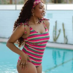Scoop back, scoop front, higher cut on the legs, and a forgiving, textured fabric? It doesn’t get much more flattering than this! Our new Monica one-piece is a timeless must-have for any swimsuit collection. The silver rings and wider straps give it a vintage vibe we love!